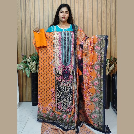 Unstitched Cotton Three Piece